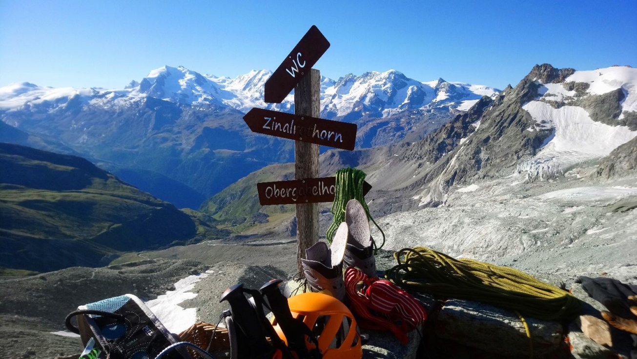 W dobie panowania COVIDA-19 tj. na początku sierpnia 2020 r postanowiliśmy jednak izolować się w Alpach. Tzn. Maciej, Radek i ja wzięliśmy za cel zdobycie honornych szczytów Ober Gabelhornu i Zinalrothornu. To czterotysięczniki leżące tuż obok słynnego Matterhornu. Szczyty są mozolne w podejściu do schroniska ale i nieco trudne do zdobycia nawet drogą normalną. Wszystko zależy od warunków pogodowych.