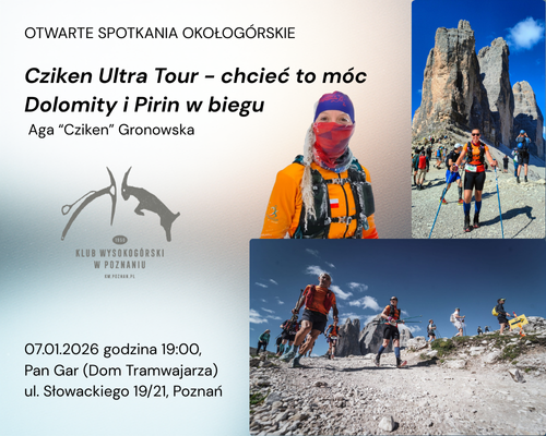 Zapraszamy Was wszystkich na 24. wydarzenie z cyklu poznańskich OS-ów – Otwartych Spotkań Okołogórskich Klubu Wysokogórskiego w Poznaniu