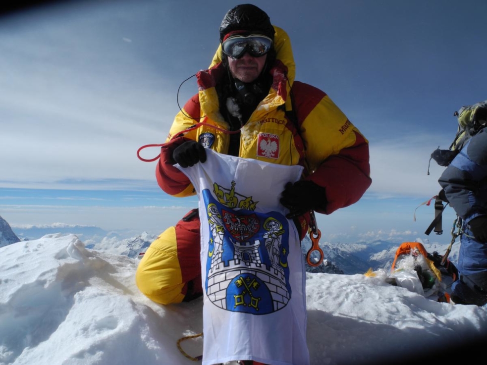 Na szczycie Mount Everest (8848 m n.p.m.) staje Tadeusz Kudelski (KW Poznań).
