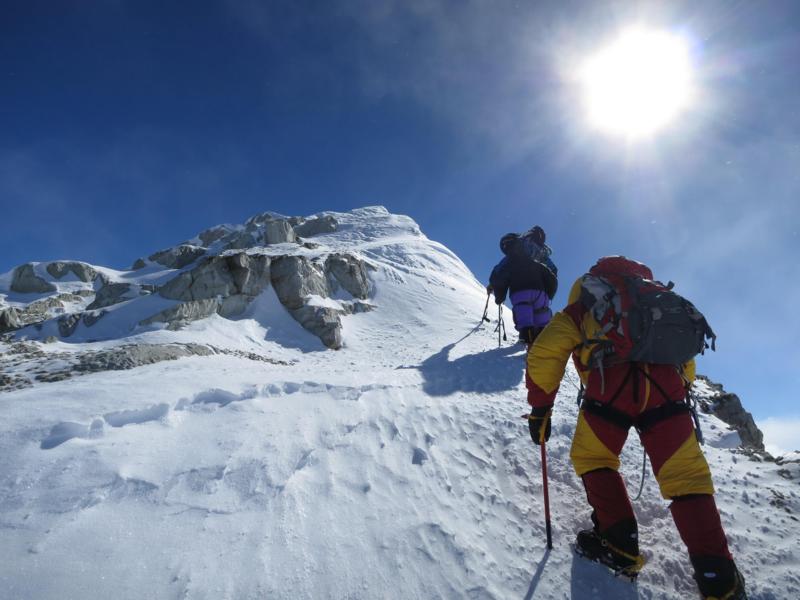 Na bardzo charakterystycznym szczycie Ama Dablam (6856 m n.p.m.), znajdującym się o okolicy Mount Everestu, stają Maciej Sokołowski (KW Poznań) i Marcin Nowaczyk (KW Poznań).