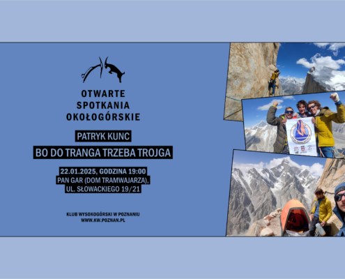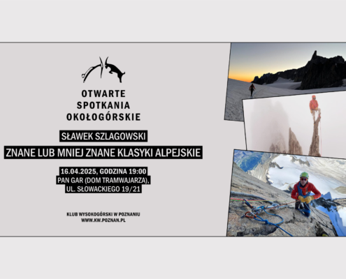 Zapraszamy na kolejne spotkanie z cyklu poznańskich OS-ów. Tym razem naszymi gośćmi będą doświadczeni wspinacze: Tomasz Zieliński i Paweł Olszewski.