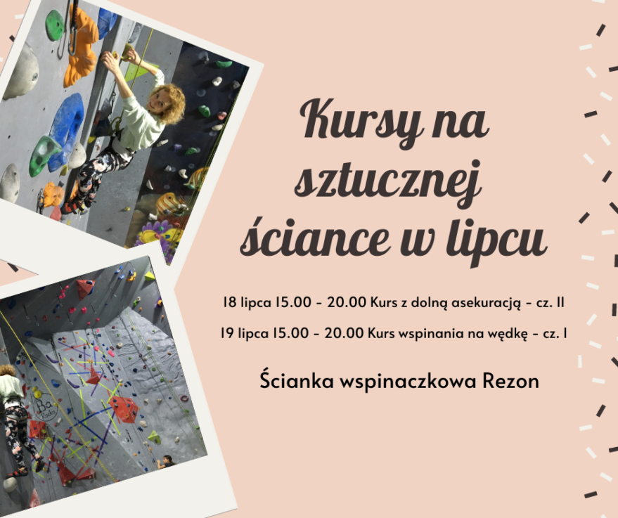 18 i 19 lipca zapraszamy Was na kursy wspinania na sztucznej ściance część I i II.